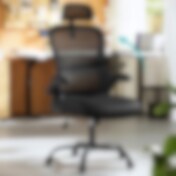 Ergonomisk kontorstol med dynamisk korsryggstøtte og justerbar nakkestøtte - Svart