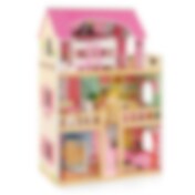 Stort Rosa Dukkehus i Tre – 3 Etasjer med 15 Møbler