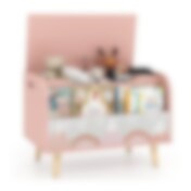 Lekekasse med bokhylle / lekeoppbevaring med lokk / rosa barnemøbel
