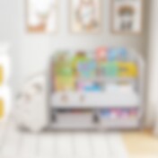 Lekeoppbevaring med bokhylle – bokhylle / bilformet barnemøbel