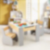 3-i-1 aktivitetsbord med to stoler for barn - natur/grå