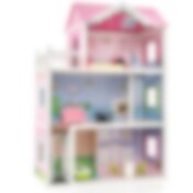 Stort Rosa Dukkehus i Tre – 3 Etasjer med 15 Møbler