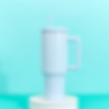 Vannflaske med sugerør og håndtak - Lyseblå