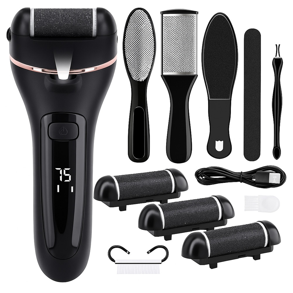Elektrisk fotfil - batteridrevet hælfil med 6 utskiftbare ruller