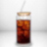 Glasskrus 460 ml med bambuslokk og sugerør – til kalde og varme drikker