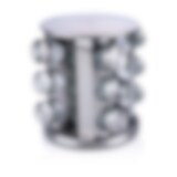 Roterende krydderhylle med 12 krukker i rustfritt stål og glass