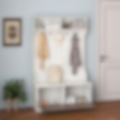 Skohylle med polstret sete og oppbevaringsrom - Hvit