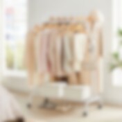 Klesstativ på hjul med uttrekkbar hengestang og 100 kg lastekapasitet - Hvit