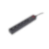 Strømskinne med 5 kontakter, bryter og overspenningsvern - 4,5 m, svart