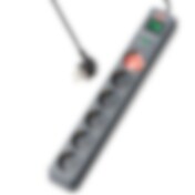 Bachmann PRIMO ALU stikkontaktlist, 6-veis, svart, 2,0 m, med bryter