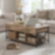 Rundt sidebord med 2 hyller - rustikk brun/svart