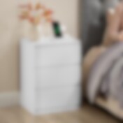Nattbord med 3 skuffer og strøm- samt USB-kontakter – Hvit