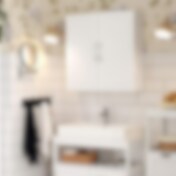 Smalt baderomsskap med uttrekkbar skuff - Hvit