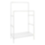 Klesstativ med 2 klesskinner og oppbevaringshylle i hvit metall