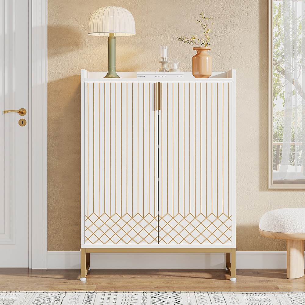 Skoskap i tre med dører og 5 hyller - Hvit