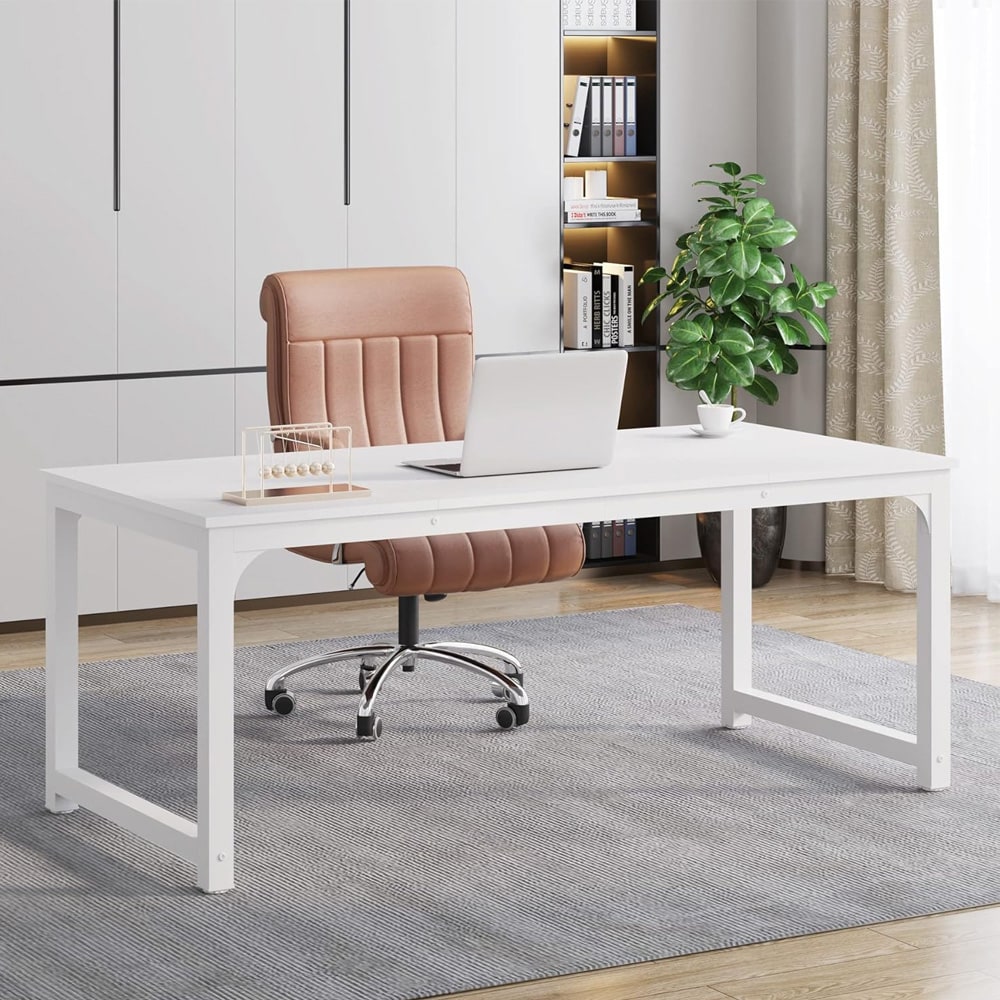Skrivebord i moderne design med robust metallramme 160x80 cm - Hvit