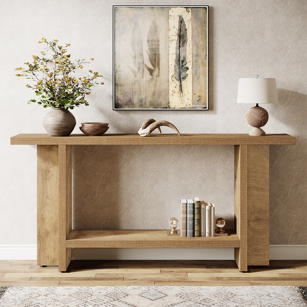 Avlastningsbord i tre med tofarget design og nedre hylle 160x30x82cm