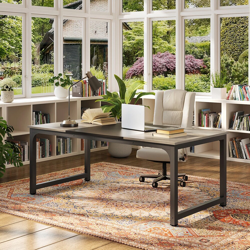 Skrivebord i tre/metall 180x80cm - Grå/svart