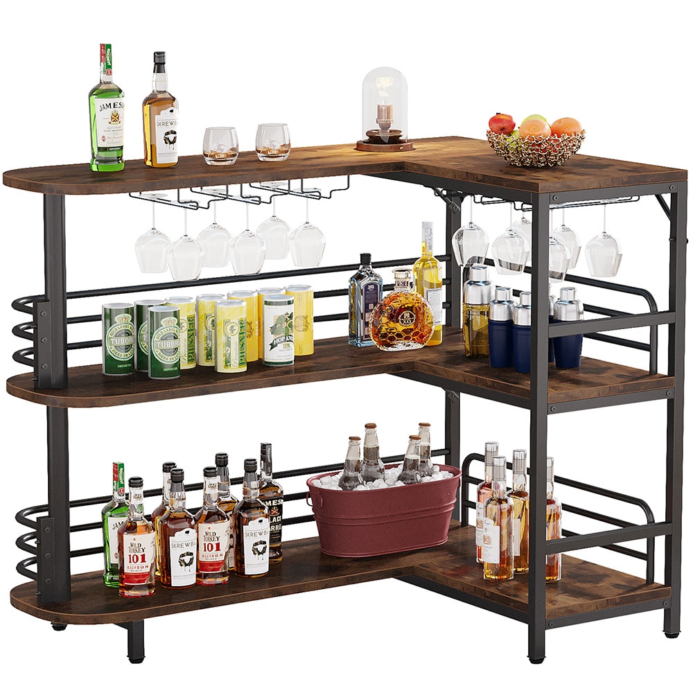 L-formet barbord med vinglassholder i metall/tre