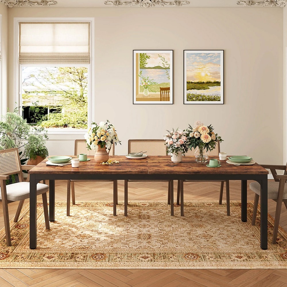 Spisebord med metallramme 200x70cm - Brun/Svart