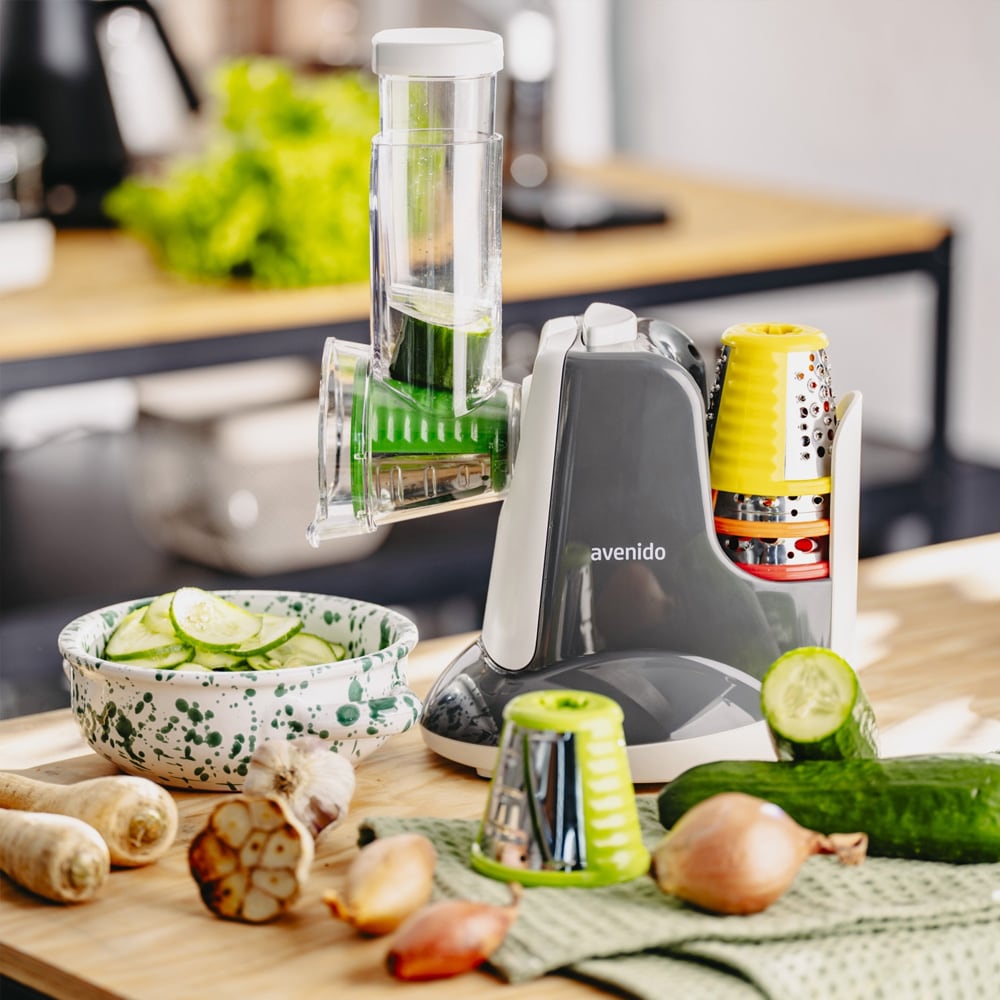 Elektrisk grønnsakskutter 5-i-1 – rivjern, skiver og multifunksjonell kjøkkenmaskin