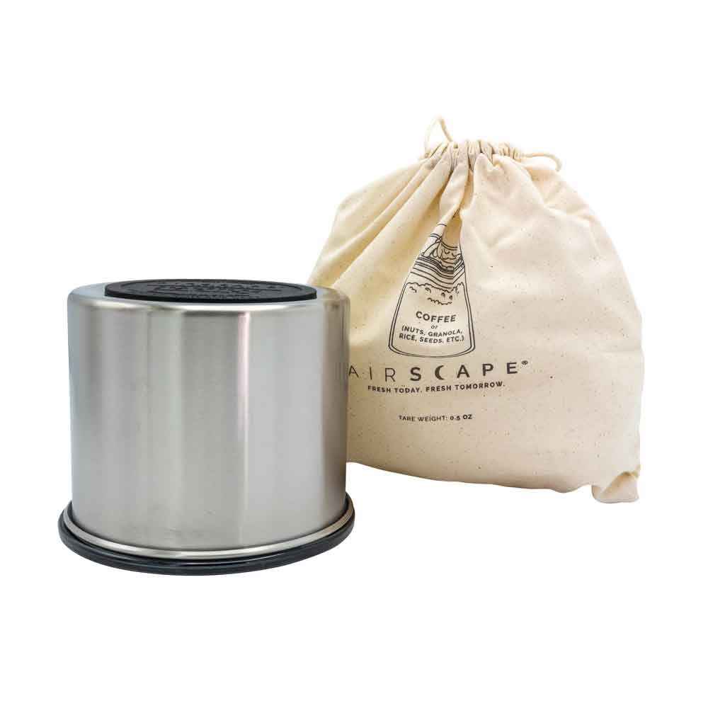 liten Airscape-smaksbeholder i børstet sølvfarget rustfritt stål
