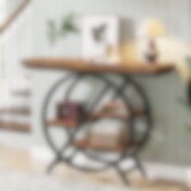 Avlastningsbord i tre og metall / industrielt konsollbord med hyller / sidebord til hall og stue
