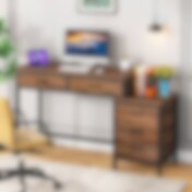Skrivebord i tre og metall med skuffer og integrert kommode / skrivebord med oppbevaring og kommode / industrielt skrivebord med skuffer