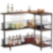 L-formet barbord med vinglassholder i metall/tre / barbord i industriell stil / hjørnebord med flaskehyller