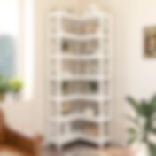 Hvit hjørnebokhylle i moderne design med 5 justerbare hyller / hjørnebokhylle i hvit utførelse / hjørnebokhylle