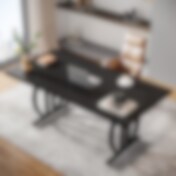 Skrivebord i tre med metallramme - Svart / moderne skrivebord for kontor og hjemmekontor / stilig skrivebord med stort arbeidsområde