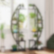 Plantestativ i tre og metall / blomsterhylle med flere hyller / plantestativ i trappedesign / hylle for planter og dekorasjon