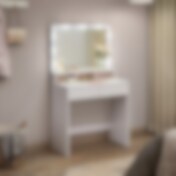 VASAGLE Hvitt Sminkebord med Speil og LED-belysning – 2 Skuffer og 3 Hyller