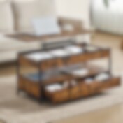Sofabord med løftbar plate og 2 skuffer – Rustikk brun/Sort