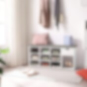 Oppbevaringsbenk med polstret sete og 9 rom - Hvit/grå