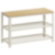 Skohylle med bambusbenk med polstret sete og 2 hyller - Hvit