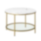 Rundt salongbord i marmorlook med glassplate under - Hvit/Gull