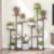 Blomsterpidestall med 8 søyler i tre og metall – rustikk brun / svart