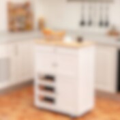 Kjøkkenvogn med hjul - vinhylle og skap - Hvit