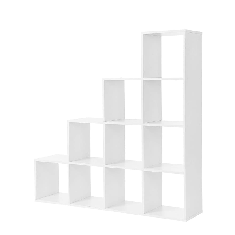 Stilig Bokhylle med 10 Rom - Asymmetrisk Design, Robust Konstruksjon, Hvit