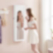 Veggmontert speilskap med LED-belysning for sminke og smykker