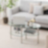 Rundt Salongbord med Marmorplate og Herdet Glasshylle - Elegant og Funksjonelt