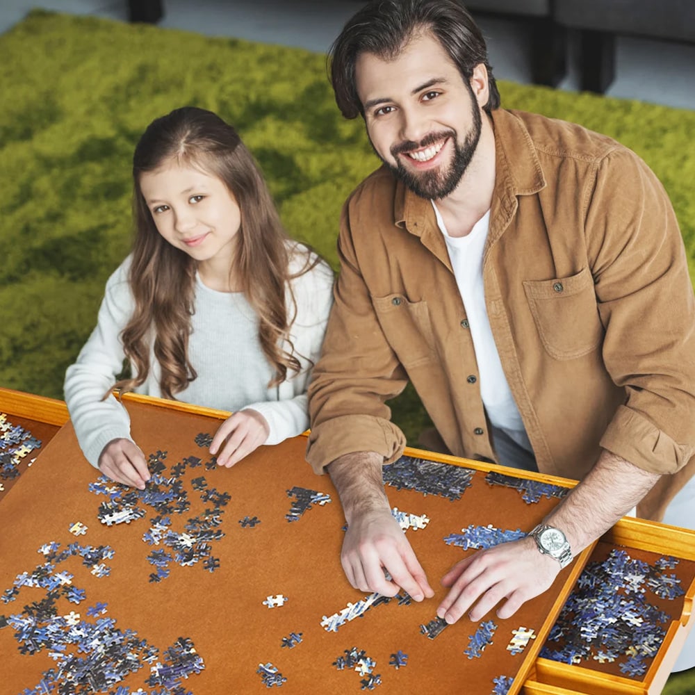 Puslespillbord i tre 1000–1500 brikker / bord med skuffer og sortering til puslespill