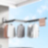 Klesstativ på Hjul med Uttrekkbar Hengestang - 90 kg Kapasitet - Svart
