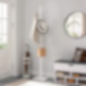 Klesstativ med 2 klesskinner og oppbevaringshylle i hvit metall