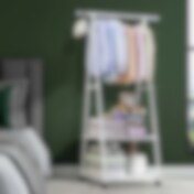Klesstativ på hjul med hylle - hvit