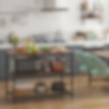 Bakebord / kjøkkenøy med 2 hyller - Rustikk brun/svart
