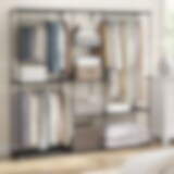 Bærbar Garderobe med Klesstang og Hyller - Svart