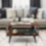 Sofabord med heveplate og åpen/skjult oppbevaring, 60 x 100 x (48-62) cm - Rustikk brun / svart