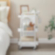 Serveringsvogn med Hjul og Kurver – Hvit Stålvogn med Avtakbare Hyller og Bremser